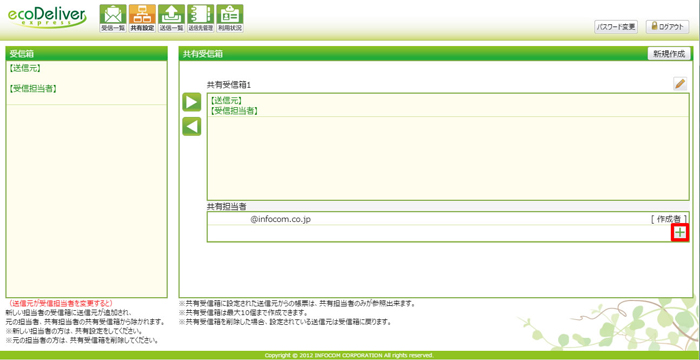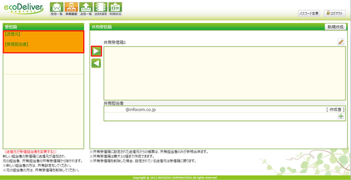 ※共有設定のご利用方法につきましては「Q7 他の方や他のメールアドレスでも電子データを受け取れる様にしたい」をご参照ください。