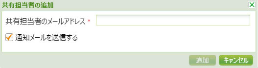 5.「共有担当者の追加」画面にて、共有担当者のメールアドレスを入力し「追加」ボタンを押す。