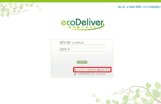 1.ログイン画面にて「パスワードを忘れた場合はこちら」をクリック。